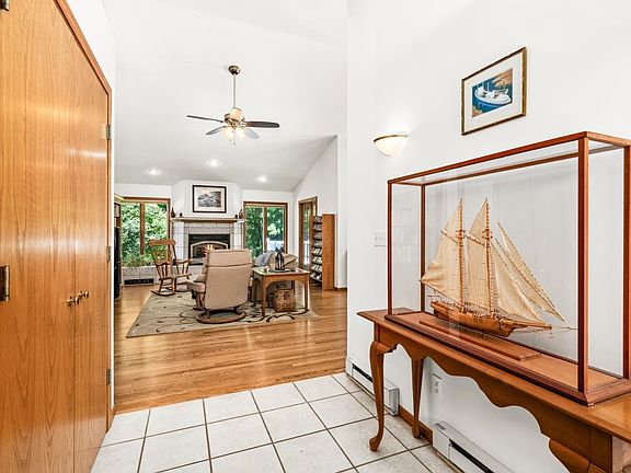 Welcome to a home where quality construction meets a lifestyle of ease and enjoyment. Thoughtfully designed and custom-built, this single-level home is more than just a floor plan—it’s a retreat where every space invites you to live comfortably. Vaulted ceilings and hardwood floors set a warm, timeless tone, while the living room’s gas fireplace creates the perfect backdrop for cozy evenings. The kitchen was designed with intention—spacious, practical, and ready for both everyday meals and special occasions. The large center island, complete with a cooktop and utility sink, makes cooking a breeze. Ample cabinetry provides room for every dish and gadget, while the layout allows space for a kitchen table as well. In addition to eat-in kitchen dining, the formal dining room is ready for holidays, dinner parties, or Sunday suppers that stretch into the evening. A sunny office with patio doors steps out to the deck, where mornings can start by taking in the view of your own park-like backyard. For hobbies, creativity, or simply a place to spread out, there is a versatile workshop-style flex area—perfect for crafting, projects, or keeping life organized. The primary suite is spacious featuring a wall of shelving (stays with the home but could be removed), an additional mini split for ultimate comfort control, an en-suite with jetted tub, walk-in shower, dual vanities, plus a large walk-in closet with custom organization. A spacious second bedroom with double closets ensures that family and guests feel right at home. You'll always feel the perfect temperature throughout the home with the two mini splits that offer heat and A/C, baseboard heating, and the gas fireplace. Garage lovers will appreciate the attached 2-car garage for daily use, and the detached 2-car heated and insulated garage tucked into the backyard. It’s the ultimate hobby garage—whether you’re restoring, creating, or simply needing a quiet place to tinker. This home is the perfect fit for someone ready to simplify without sacrificing space, style, or storage. All of this is located just minutes from the mall, shopping, and restaurants.