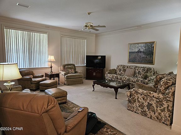 'CURRENTLY UNDER CONTRACT, SELLER WILL CONSIDER BACKUP OFFERS' This full brick, 3 bedroom, 3 full bathroom home can handle a large family as it has more than 2,100 square feet. The tall ceilings make it feel bigger. The master bedroom and the third bedroom has a full bathroom in addition to a full bathroom in the hallway. It has a separate dining room, eat-in kitchen and a breakfast bar. The covered back patio can be accessed from the eat-in kitchen area as well as the master bedroom. It is all on one level with the only steps at the front door and the 2-car garage that has an electric chair lift. Much of the big home has crown molding and flooring includes hardwoods, carpet and tile. The kitchen has plenty of room and has a double oven, electric cook top, lots of counter space and a breakfast bar. The double sink area is open to the living room and eat-in area. After Hurricane Michael the roof was replaced as well as all the insulation in the attic. The yard has a sprinkler system and the landscape company tends to the lush green grass. The home is not far from plenty of shopping, restaurants, bay access, and the World's Most Beautiful Beaches. Note the captions with each of the 50 photos.