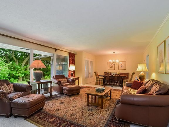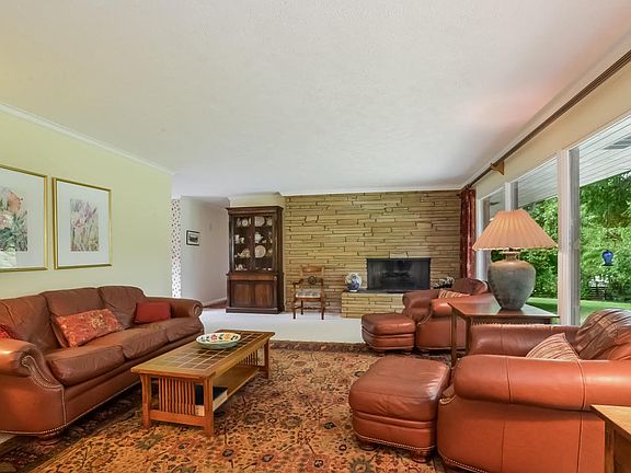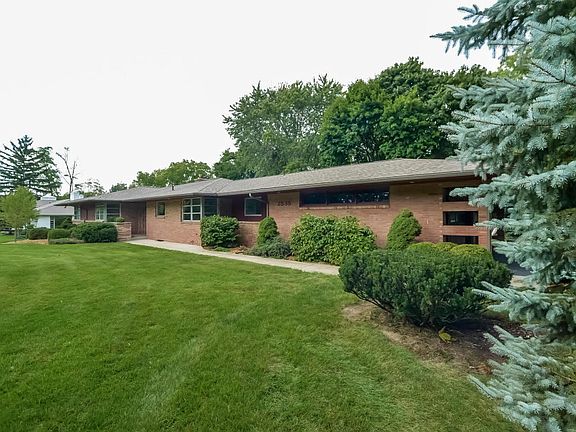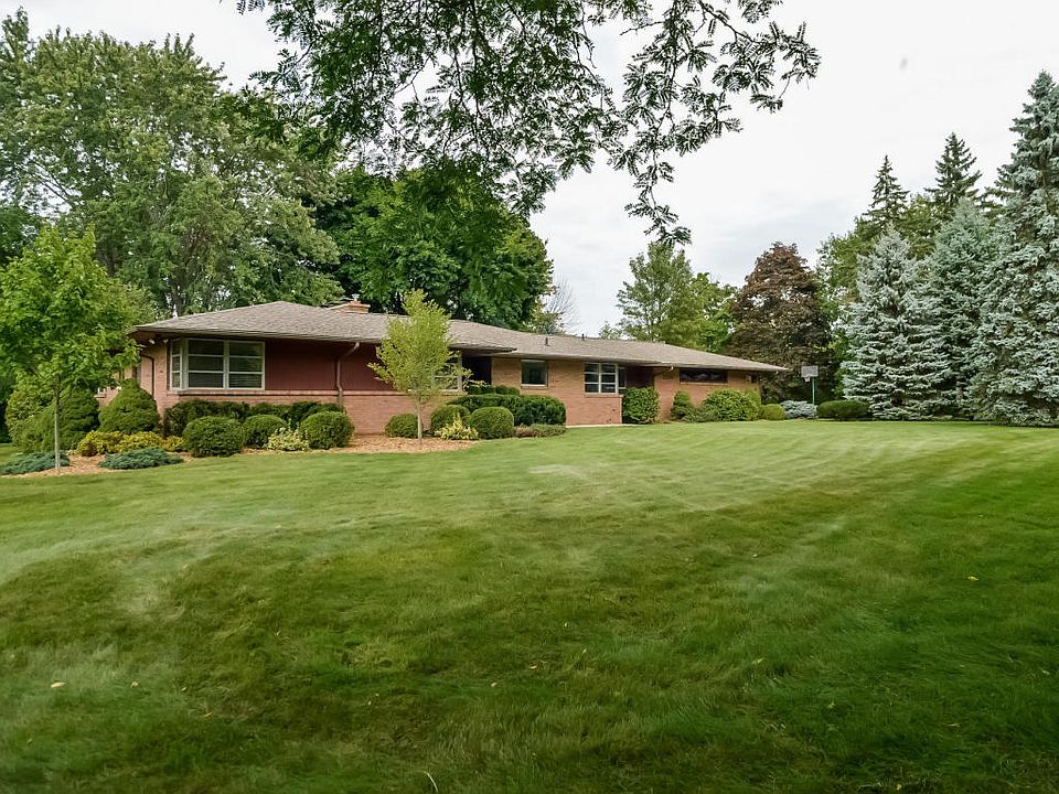 Mid Century Modern in East Grand Rapids schools with GR Township taxes on nearly and acre of property. With 1898 sq. ft. above grade(2458 sq. ft. finished) this sprawling brick ranch with corner windows has 3+ bedrooms and 3 full baths. The open great room with a stone fireplace and a wall of windows overlooking the private back yard is the highlight of the main floor which also includes an open kitchen(granite counters)with eating area flooded with natural light, a warm den with brick fireplac e, 3 bedrooms, 2 full baths, main floor laundry and a 3 season roomwith adjoining patio. The very nicely appointed lower levels has a family room with a fireplace, a 3rd full bath, rec room, exercise area, workshop and storage. This is a wonderful home that has great bones.