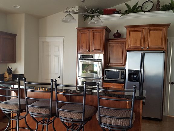 Beautiful, well maintained home with excellent valley views. 5 BR, 3.5 BA, vaulted ceilings, gas log fireplace, spacious covered deck and patio in lovely landscaped yard. Kitchen has granite countertops, double ovens, pantry and large breakfast bar. 3-car garage and fully fenced yard. Gorgeous views of the valley.
