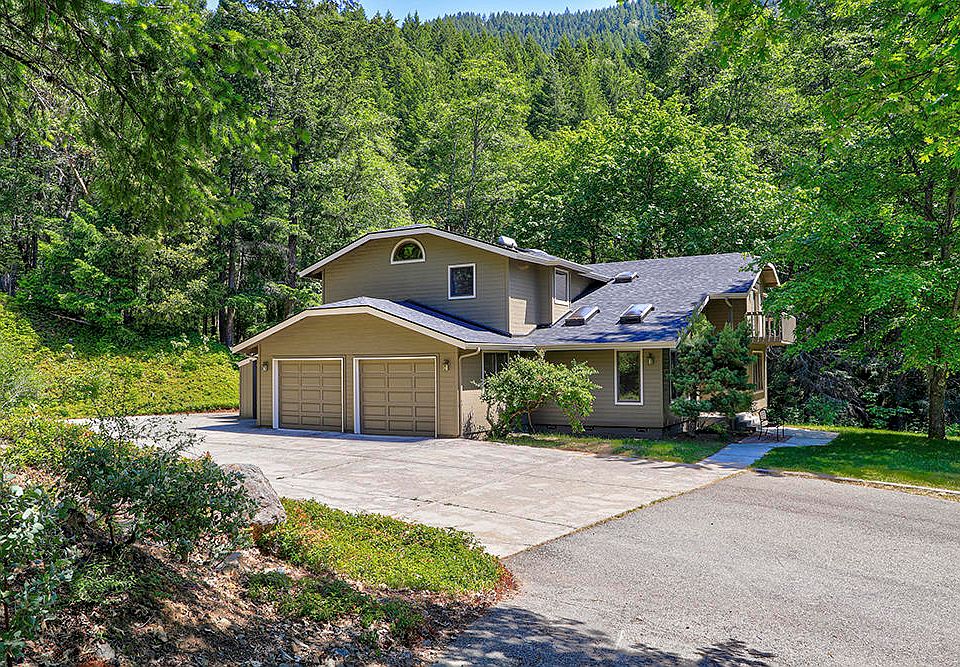 The ultimate mountain retreat/hideaway. Nestled alongside a seasonal stream in a beautifully and heavily wooded valley, this contemporary 1989 home features 2433 sq/ft with 3 bedrooms, 2.5 baths, a family room, an office and more. Recently painted inside and out, new carpet, new roof and more make this 'move in' ready. But the real bonus is the property-- 182 acres, surrounded by BLM and County land that offers total peace and privacy less than 15 minutes from town. Loads of marketable timber, private cruise details available. Unique and rich in natural resources, call today for your own personal tour.