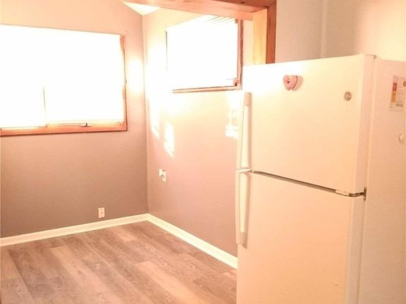 Enjoy a bright and inviting living area, a functional kitchen equipped with a refrigerator and stove, and an attached garage for added convenience. The home also features washer and dryer hookups in the basement for easy laundry access.