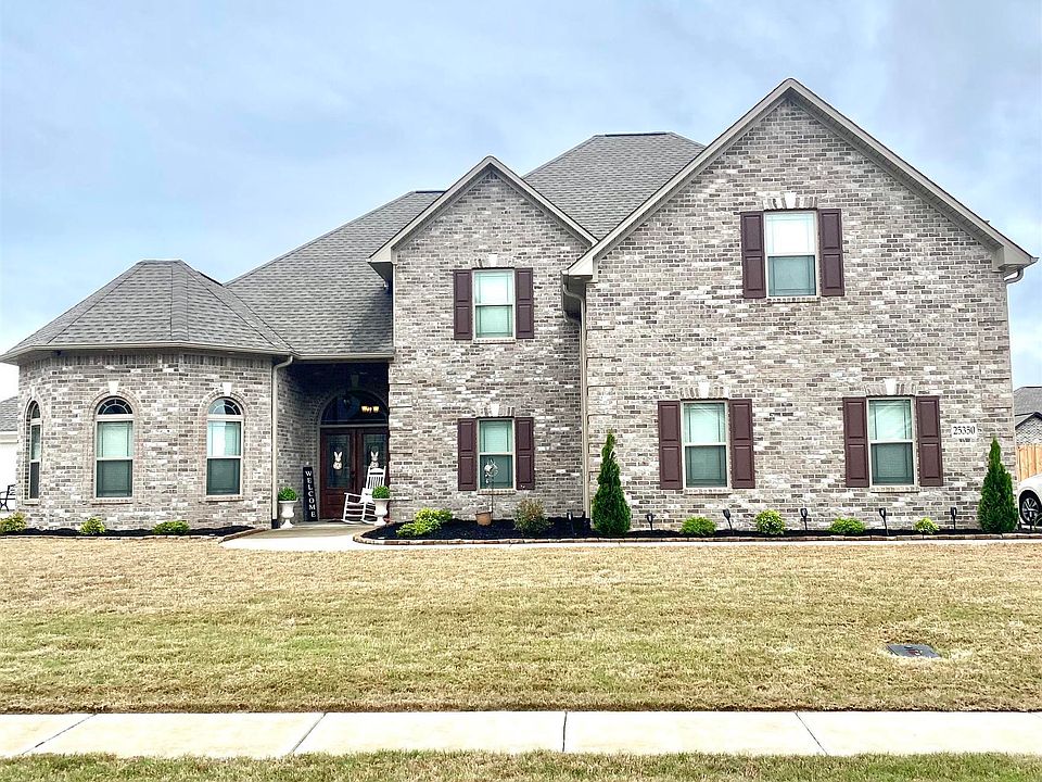 This gorgeous 2 story full brick home features Large bedrooms throughout with large closets and storage space Throughout this beautiful custom home . Your Kitchen boast tons of cabinet space -Granite-Island-eat-in and much more! Your spacious formal dining room features exquisite custom trim. Master bedroom on the main level is equipped with custom trim work and a Luxury bath -tile shower-whirlpool tub and walk in closet a must see! What is currently used as a sitting room could easily be used as a 5th bedroom this room features a walk-in safe room with space to make a closet .Upstairs has TONS of room for guest or the Kiddo's with spacious rooms and custom bathroom. This home is a must see