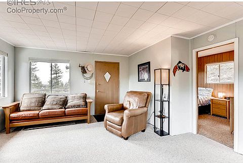 AMAZING MOUNTAIN VIEWS. This cozy cabin offers many improvements, including a gorgeous 3 sided gas fireplace with thermostat & blower, new carpet, updated bathroom. Great producing well and the septic and is permitted for 3 br and 2 bath. The walk out lower level offers the laundry and is just waiting for finishing. It could easily be converted to add a bedroom and bathroom - the rough-in is already in place as well as the gas heat. Don't miss the opportunity to own a home in beautiful Conifer.