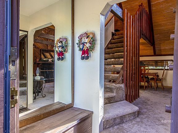 This custom-built, year-round 4Bdrm/2.5Bth home is perfect for full-time family living or a tranquil weekend getaway. The main floor enjoys open-concept living room w/vaulted ceilings + wood-burning fireplace, flowing into a spacious dining area, then to an open kitchen w/wood flooring, custom tile counters, trash compactor, adjacent walk-in pantry + a .5 Bth w/laundry. 2 sliding glass doors provide treetop views + lead out to the wrap-around deck, great for BBQs + outdoor living. Upstairs loft provides TV/office or extra sleeping + includes a balcony. The middle level has 3 bedrooms, including the roomy master suite w/a full bath + a 15 ft. wall of mirrored-door closets. The lowest level can be a family room or 2nd master w/full Bth, currently used as a combination of both w/the pool table included. This cabin features a central vacuum, skylight in the living room, + comes completely furnished. Big pluses include easy access parking deck, under-house storage, + comes fully furnished, including dishes, pots & pans, + linens. Recent Improvements include roof, parking deck, carpeting + some appliances. Come see a great family home that will create memories lasting a lifetime!