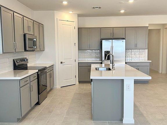 LOOK AT THIS BEAUTY! Spacious, split floor plan has four bedrooms, an office/craft room and 2.5 baths! Energy efficient home, so much space. Smart Home package with video doorbell, thermostat, garage door opener too. Beautiful kitchen for entertaining features gray shaker cabinets, brushed nickel hardware & fixtures, quartz counters, and a walk-in pantry. Large island with breakfast bar, single bowl sink, pendant light prewires, GE stainless steel appliances AND refrigerator. Large bedrooms, half bath for quests, secondary bathroom has privacy door & dual sinks, blinds added! Lots of closet space. 8' interior doors, 9' ceilings, 8' garage door, no back neighbor. Laundry room includes base and upper cabinets, washer & dryer! Nice 12''x24'' tile except carpet in bedrooms and closets.