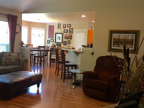 Ranch-style home on large corner lot, walking distance to The Village with no immediate back neighbors. Open floor plan with vaulted ceilings, newer carpet, huge master closet, handicap accessible master bed/bath/closet, large insulated garage w/ attic storage, laundry sink, new thermostat, gorgeous N facing backyard with massive trees tons of color, fire pit, year-round patio, cul-de-sac street, walking distance to elementary school, playground, and dog area.