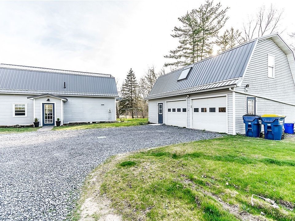 Check out this Seneca River Home with 385 ft of waterfrontage! If that doesn't sell you the large Detached Garage with In-Law Suite or Guest Space w/Full Kitchen, Livingroom, Laundry & Bedroom on the second floor sure will! In the garage behind the bays is another kitchen space with sink that was previously used for wine and beer making. The main house with nearly 1,600 sqft of living space features absolutely stunning Hand Carved Hardwood floors, a first-floor bedroom and first-floor full bath. Upstairs there are 3 more bedrooms including a huge Master Bedroom with brand new Master Bathroom as well as a private Balcony with water view. Enjoy your 385 ft of private river frontage while enjoying coffee on your screened in porch along the back of the home looking out to the tranquility of the beautiful Seneca River. Also, on this almost 4-acre lot are newly planted Valvin Muscat & Baco Nior Grape plants! Driveway recently redone with new drainage. Weedsport School District!