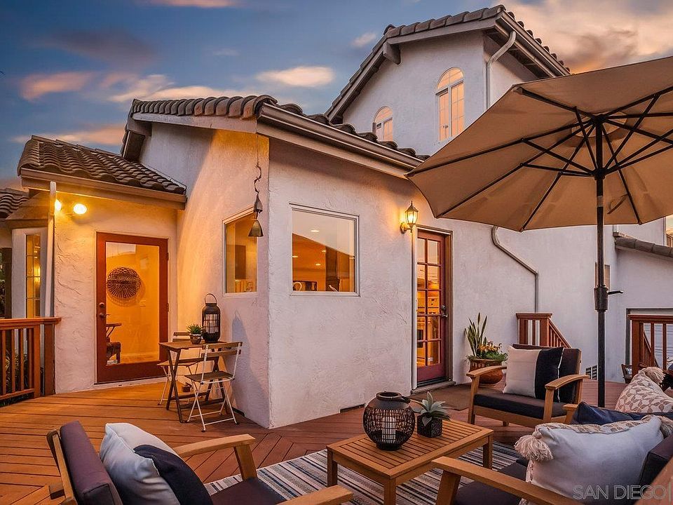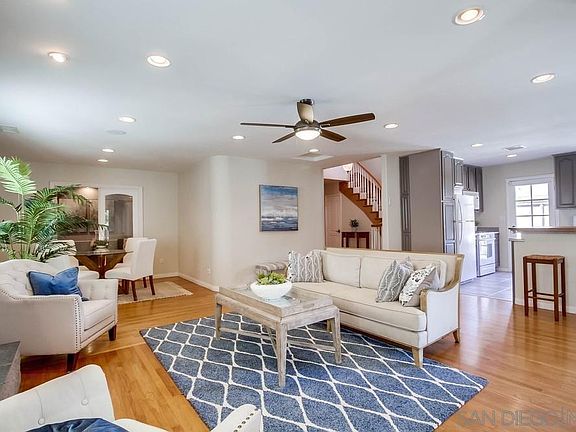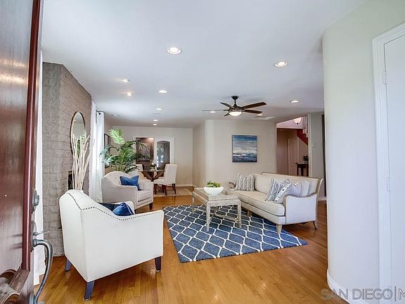 Large 3100 sq ft Mediterranean style home in Bay Park. 3 bed, 2.5 bath, +office with built in shelves. 2 oversized master bedrooms . Views of Mission Bay and seaworld fireworks . 2 car garage, hot tub, fire pit, AC, alarm system, surround speakers, avocado tree, 2 decks, and more. Natural light and solar panels keep electric bills to a minimum. Every day feels like a vacation in this charming Bay Park house. Owner pays for landscaping. (optional) Partial home furnishings include: master bedroom dressers & nightstands, TV in living room, patio dining set, & surround sound stereo, at no additional charge.