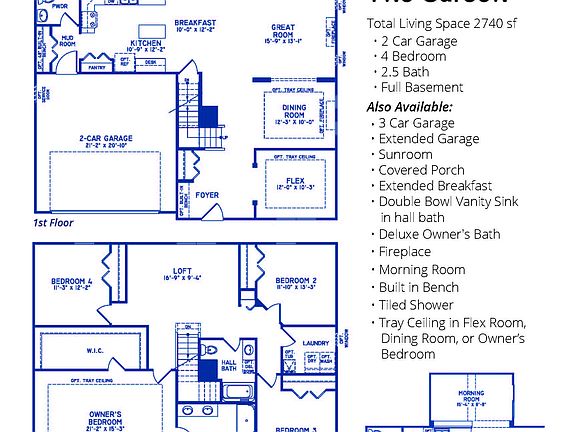 The Carson floor plan is an inviting home with over 2,720 sf of open concept living space and a 2 car with side extension garage, and full basement. Enter the front door to the foyer with guest closet and flex room with French doors - ideal for a home office or study. The living room or dining space adjoins the main level great room with gas fireplace. Spacious kitchen with separate breakfast area showcases sliding doors to the backyard deck. The kitchen features painted white cabinetry, stainless steel appliance package, quartz countertops, spacious pantry and island. The 4 upper level bedrooms surround a centrally located family room loft along with a 2nd floor laundry. The large owner's suite offers and spacious walk in closet and separate attached bathroom featuring a custom tiled shower, garden tub and double vanity. Front yard sod and landscaping included.