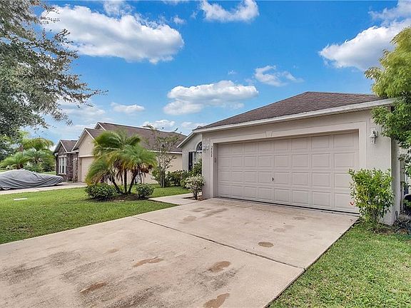 Welcome to this lovely 3 bed 2 bath home featuring 1,636 of living space. Beautiful landscaping welcomes you upon arrival and maximizes the curb appeal. The foyer leads to the open living area - the perfect floorplan for entertaining and daily living. The kitchen overlooks the family room with matching appliances, large cabinets, plenty of cabinet space and an eat-in bar. The kitchen is adjacent to the dining area with sliding glass door to the partially fenced backyard and patio. Plenty of room for family and pets to play. The master suite includes soaking tub, walk-in closet and separate shower area. Secondary bedrooms are large enough to easily accommodate overnight friends and your growing family. This home is a short walk to Ventura Elementary School, close to shopping, dining and easy access to Disney area attractions. It's an easy commute to downtown Orlando, Florida's Turnpike and SR-417. Call now to schedule your showing!