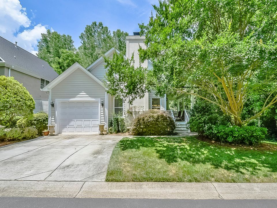 Charming home nestled in a private, wooded setting in the desirable Charleston style community, Darby Hall. Located in South Charlotte/SouthPark area - minutes from shopping and restaurants, in a sought after school district! Home boasts an open kitchen, with ample cabinet/countertop space, that overlooks the eat-in dining area and living room with a fireplace and tray ceiling. Spacious master on main with tray ceiling, a walk-in closet, garden tub, separate tile shower & dual sinks. Large unfinished basement, spacious secondary bedrooms upstairs, 1-car garage, welcoming front porch, hardwoods throughout main living area, side deck off kitchen with stairs to lawn, and laundry room with built-ins. Lawn maintenance, pool and water included in HOA fee! Refrigerator conveys. A must see!