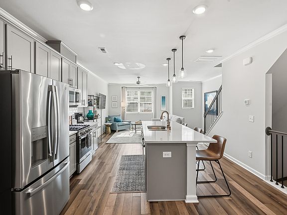 Charming townhome with 3 bedrooms, 3.5 bathrooms, and a 1-car garage nestled in the desirable Magnolia Trace community, offering a perfect blend of convenience and a friendly community atmosphere.The welcoming foyer on the 1st floor leads to a versatile room that can serve as a bedroom, home office, or family room, complete with an adjacent full bath. The 2nd floor boasts a stunning open floor plan, designed for both comfort and entertainment, with abundant natural sunlight. The dine-in kitchen features a large center island, quartz countertops, stainless steel appliances, a gas range and spacious storage and pantry. Step out onto the deck that overlooks a private tree lined back yard. The 3rd floor offers a large primary suite and secondary bedroom with ensuite full bath; a laundry area. 10 minutes to North Hills! Fantastic location!