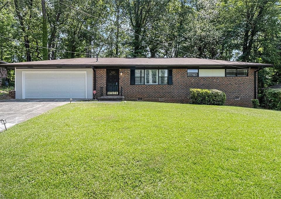 Welcome Home. If you are looking for a 4 sided brick mid century with all the modern conveniences in a well kept Southeast Atlanta community? We have the PERFECT home for you! This is a TOTAL rehab - down to the studs - a remarkable Mid-Century masterpiece with upscale finishes typically found in MUCH more expensive homes. The two car carport has been enclosed to create a 2 car garage with storage and access to the backyard and a garage door opener. A rare feature in mid centuries. The upgrades seem endless: a completely open living area boasting a magnificent chef's kitchen with a large island, new kitchen cabinets, new stainless steel appliances, and gleaming granite blue/gray countertops; new primary suite and well appointed large en-suite; Totally remodeled and upgraded secondary bedrooms and guest bath, there is flex space between the primary and secondary bedrooms, perfect for a home office or reading nook; conveniently located laundry room on the main floor; Updated HVAC, new hot water heater, upgraded plumbing, new electrical, roof - 5 years, some new windows, new exterior siding, interior and exterior paint. You will have a like-new Mid-Century home for a fraction of the price of a new construction home! All of this overlooks a spacious flat backyard. No part of this home was untouched! The location is perfect: WALK TO BROWNSMILL GOLF COURSE, just off Interstate 75, minutes to Downtown/Midtown Atlanta, Hartsfield-Jackson Atlanta Airport, Atlanta's PATH greenway walk and bicycle path and EVERYTHING else Central Atlanta has to offer. Hurry and book your private showing today!