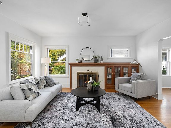 This classic Portland bungalow blends timeless character with thoughtful updates and flexible living spaces. The main level features a welcoming living room with hardwood floors, natural wood built-ins, and a wood-burning fireplace. The adjoining dining room retains its original built-ins and flows into a roomy kitchen that balances vintage charm with modern convenience. French doors open to a main level bedroom that also functions beautifully as an office or guest space. A second bedroom and full bath complete the main floor. Upstairs, a spacious third bedroom suite includes vaulted ceilings, skylights, a sitting area, and a full bath, perfect as a primary retreat. The private backyard offers a dog run, custom dog house, and detached garage, all nestled in one of Portland’s most desirable neighborhoods. [Home Energy Score = 2. HES Report at https://rpt.greenbuildingregistry.com/hes/OR10241583]