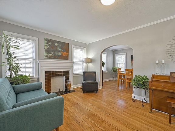 This charming Colonial home in the sought-after Cleveland Neighborhood is just a block away from the neighborhood gazebo and the park-like main boulevard. Step inside and be greeted by the formal living area, featuring original hardwood floors, a mock fireplace, and a stunning staircase with the original iron railing. An elegant archway leads to the centrally located dining room and kitchen. The kitchen boasts ample countertop and cabinet space, an updated backsplash, shaker-style cabinet fronts, and stainless steel appliances, all set in a neutral color palette. The very spacious additional living area off the back of the house offers built-in bookshelves, cozy bench seating, and French doors that open to the backyard, making it perfect for entertaining or relaxing. Several windows flood the space with natural light throughout the home. Additional in the downstairs is an optional primary bedroom with an attached full bathroom and the laundry area. Upstairs, you’ll find three bedrooms, including another optional primary bedroom with a walk-in closet, and a beautifully updated hall bathroom. Outside, the covered patio is the perfect spot to relax and enjoy the nicely landscaped backyard, or fire up the grill for gatherings with friends and family. This home also includes a basement, ideal for storage, updated double pane windows, a newer front door. Come make this house your home!