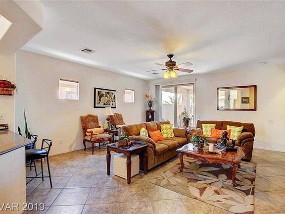 BEAUTIFUL HOME WITH OPEN FLOORPLAN , UPGRADED KITCHEN WITH CORIAN COUNTER TOPS, UPGRADED CABINETS, WHITE APPLIANCES,MASTER BATHROOM HAS DOUBLE SINK FOR HIS AND HERS,HUGE BATHTUB WALK IN CLOSET, SLIDING DOOR TO THE PATIO.UNOBSTRUCTED VIEW OF LAS VEGAS VALLEY FROM THE BACKYARD AREA, VIEW OF SOUTHPOINT CASINO and M CASINO IN THE PATIO AREA . 2 PARKS THAT BOAST OF TENNIS COURT, BASKETBALL COURT, BASEBALL COURT, PLAYGROUND., WITH WALKING TRAILS.