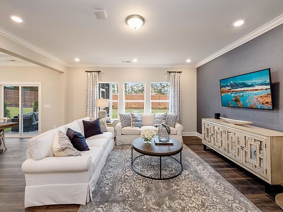 Amazing value for a 5 BEDROOM home in Raleigh!! Our Landrum home has a lovely front porch, nice and wide. Upon entering, a dining/flex room is off the foyer and the stairs hidden in an out-of-the-way location. This is a really cute home design with lots of spaces and a fantastic, open bonus room! Loaded with Lennar's well-thought out features like gas cooktop on Quartz counters, built-in ovens in premium cabinets, walk-in pantry with hard shelving. Hardwood stairs, porcelain tile in full baths, shower and laundry! Large, flat yard protected by a community area behind the home. Just down the road is the Buffaloe Rd Aquatic Center and Athletic Park!