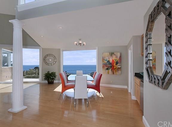 Wonderful ocean views from this soft contemporary luxury home located in sought after Temple Hills. With Catalina and sunset views, this 4 bedroom 3.5 bath home is designed in a European style with lovely gardens and gated security. Bright and open, this estate has large picture windows with the Pacific Ocean as your backdrop. High ceilings with skylights bring the outdoors inside. Enjoy the large great room and separate dining room with wet bar, perfect for entertaining. A wonderful chefs kitchen allows for the gourmet chef to gaze out to the inspiring ocean views while preparing their next masterpiece at stove-side. The ocean view grand master suite has an oversized walk in closet, sitting room, large dual shower, custom designer fixtures and fireplace with great ocean views. Enjoy the private patio attached. Additional features include, beautiful hardwood and natural stone flooring throughout, second master suite and floor to ceiling glass walls. This wonderful home it located in Laguna Village a short distance from great shopping, fine restaurants, famed beaches and some of Laguna's best art galleries.