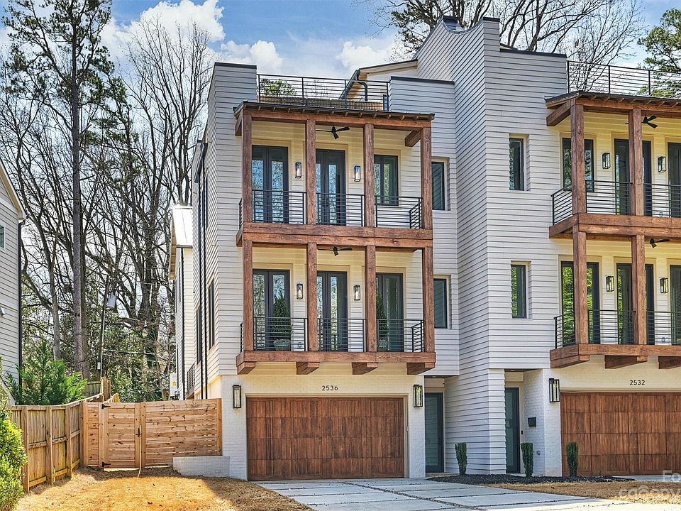 Gorgeous new construction Duet located in the heart of Elizabeth with NO HOA DUES. Large private back yard space! Sophisticated modern finishes to include white oak hardwoods, Bertazzoni Dual Fuel Range, Liebherr paneled refrigerator, and waterfall countertops. Architectural design by Craft Design Studio creates an airy feel that softens the home with natural light on all sides of the residence. If you are seeking privacy, ease, and a chic space to welcome family and friends, this residence will not disappoint. Decks off kitchen & living room, through accordion doors, make entertaining a breeze in the large outdoor spaces. To enjoy the views, elevator accesses the rooftop terrace with Ipe wood decking tiles. High end lighting, tile, and plumbing fixtures. Custom wood trim accents create warmth and depth. Large garage at completed lower level w/ drop zone. Walkable to parks, shops, and restaurants of Elizabeth and easy access to all Charlotte has to offer! Lender rate package available.