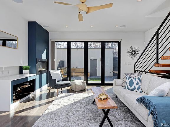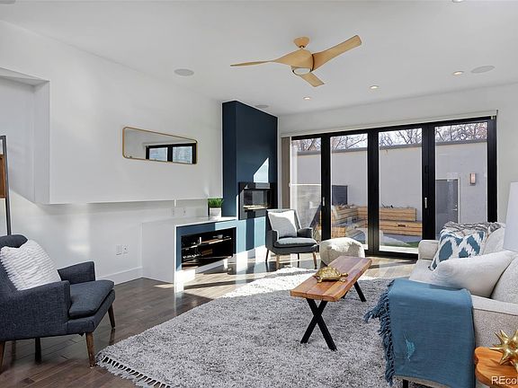 Situated on a quiet Victorian lined street w/in the Potter Highland's Historic District this custom home provides a relaxing oasis just steps away from the bars, restaurants & unparalleled LoHi action. The home is an architectural masterpiece that artfully blends the preserved charm of the original street-level brick facade w/ a striking metal clad 2nd level addition extending up to a rooftop deck w/ a gas firepit, hot tub hookup & views of Downtown Denver. Inside, the home has top-to-bottom contemporary finishes w/ gleaming wood floors, a stunning fully retractable 11'6" accordion door, fresh white paint on flat walls, custom Kolbe windows, designer light fixtures & a prominent floating staircase w/ black steel mono stringer. The living room opens to a professionally landscaped backyard featuring a large format concrete-look tile patio, built-in benches, gentle landscape lighting, low maintenance turf & an extensive summer awning. An open floor plan w/ a gourmet kitchen is ideal for entertaining w/ stainless appliances, contemporary slab-front cabinetry, single-basin undermount sink, walk-in pantry & a large center island w/ a quartz waterfall countertop providing extensive bar seating. A main floor study w/ large closet provides valuable work-from-home space. Upstairs there are 2 spacious bedrooms each w/ en-suite bathrooms. The primary suite has wood flooring, a 5-piece bathroom, walk-in closet w/ built-in vanity/shelving/dressers & a huge private composite deck overlooking the charming historic street below. The basement is fully finished w/ high ceilings & an ideal family/media room w/ a wet-bar rough-in, recessed lighting, AV closet & surround sound pre-wire. A spacious bedroom & 4th bathroom provides the perfect space for guests. A detached 2-car garage has an oversized custom garage door, 12' ceilings & a built-in storage loft providing plenty of space for all of your gear & vehicles. This home is must-see & is move-in ready w/ no rent-back required!