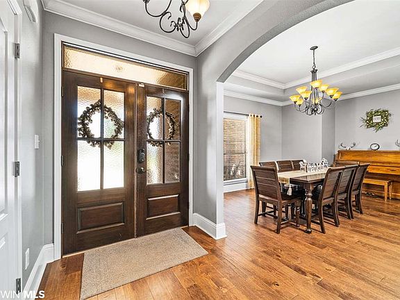 Looking for a country feel with a convenient location and great schools in Daphne? Come enjoy the peaceful views of the farmer's field out your back door in this updated home situated in the quiet, 2 street neighborhood of Cotton Ridge Estates. As you step through the front doors into the foyer, the 12' vaulted ceilings welcome you into the spacious 22x18 great room with corner gas fireplace. Enjoy open concept living in this home as the great room opens to the breakfast area and kitchen. The kitchen is updated with white painted cabinets, granite counters, stainless steel appliances, gas stove, and white stone tiled backsplash. Tray ceilings and crown molding adorn the extra large dining room which could also be used as a home office or flex space. The oversized master bedroom features a tray ceiling, crown molding, and a sitting area. The master suite is complete with a large walk in closet and ensuite bathroom with a separate water closet, double sinks, separate tub and shower. In this split bedroom floor plan, bedrooms 2 and 3 are located on the other side of the house and have generous sized closets. Large fenced in yard. The home was remodeled in 2013 with all new flooring, paint, light fixtures, tiled backsplash, stainless steel appliances, front door, shutters, and fence. Buyers should check with Baldwin County Board of Education concerning school zoning and proposed changes. Seller is a licensed Real Estate Agent in the State of Alabama.