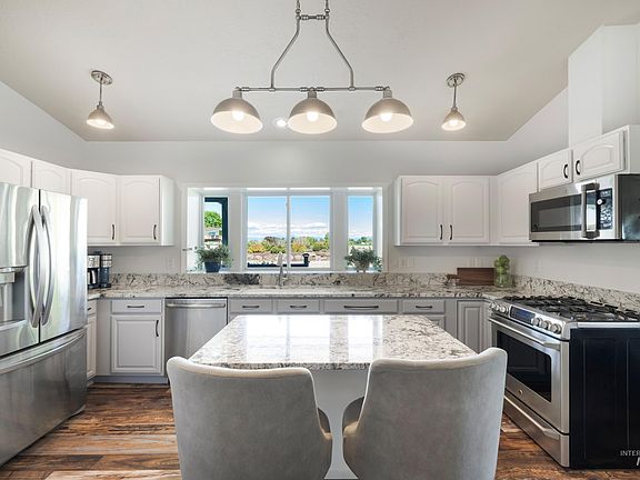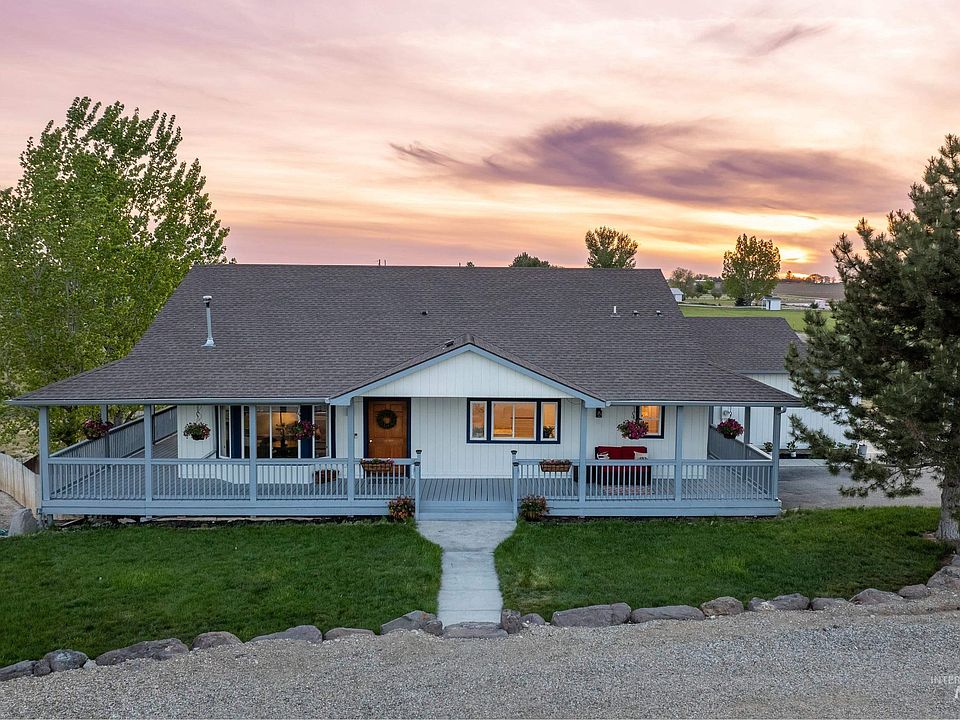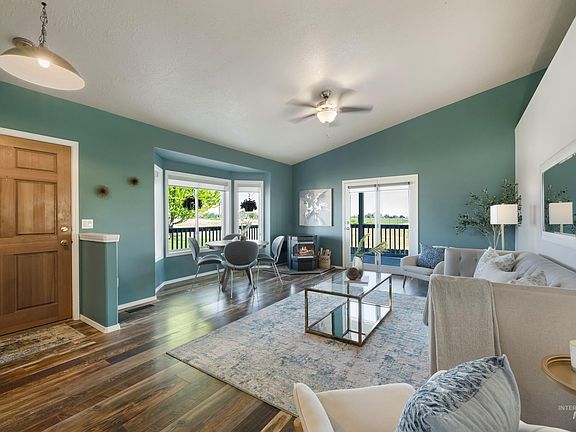 Escape to serene Middleton, Idaho, with this meticulously maintained 4-bed, 3-bath home on 5.92 acres. The inviting interior includes many updates with engineered hardwood flooring, new carpet, and a chef's kitchen with stainless steel appliances. Enjoy open living/dining with a pellet stove and scenic views of the Boise mountains. The large Luxurious primary suite features a tranquil remodeled bathroom, custom closet, access to the wrap-around deck and views of the Owyhee mountains. The basement offers two bedrooms (one bedroom does not have a closet) and a bath. Outside, a wrap-around deck, hot tub, and fenced yard offer relaxation and panoramic mountain views. Conveniently located near I-84, downtown Middleton, and Caldwell amenities.