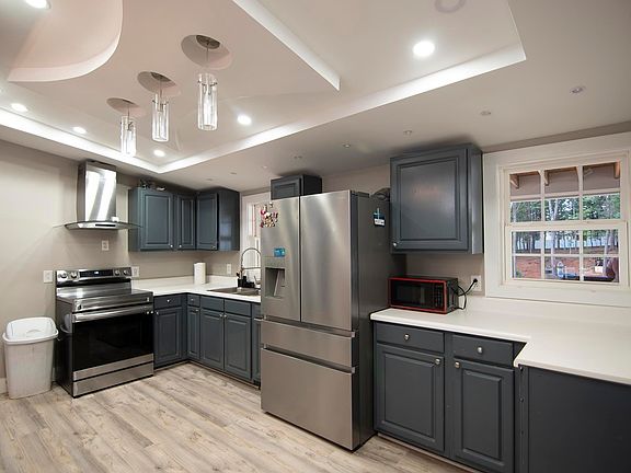 This like new 3 Bedroom, 2 Bath Ranch style home has a very modern style with custom touches. Walk up the circular stairs to the large pinewood, lighted front porch. As you enter you will see the custom touches of the pine wood bedroom doors, modern shelving in the living room to the wood counter top island in the kitchen. Additional touches include the tray ceilings, arched doorways, and recessed lighting. Owners have cared and added so much more to this house! The pluses continue outside where you find an open spacious back yard suitable for play or entertainment. The roof is new and the AC is only 2 years old. This house is one of a kind so act fast and make it yours!