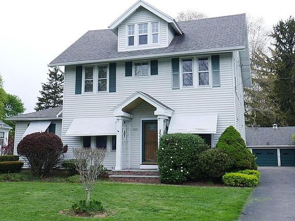 This is a Beautiful Colonial home with lots of CHARM & UPDATES. It comes with a GIGANTIC Living room, CLASSIC formal Dining room leading to the Den, which has French Doors leading to the Deck with a Pergola. The floors are made of beautiful Hardwood with Gumwood trim. In the updated kitchen you will find Corian countertops, ceramic floors, stainless appliance, and plenty of cabinet space. There are 2 Bathrooms, a newly remodeled bath on the 2nd floor and an updated bathroom in the basement. The house also boasts a newer/tear off roof, many new windows, BRAND NEW H2O tank, and furnace & air conditioning in 2011. Outside has a beautiful yard with a 2-car garage, 1/2 acre lot, & turnaround driveway.
