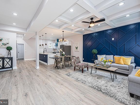 BEYOND SPECTACULAR 24 FT. WIDE RENOVATION WITH OVER 2,500 SQ. FT. OF LIVING SPACE! Open floor plan featuring wood flooring throughout the main level, a spacious living room with coffered ceiling and designer accent wall, gourmet island kitchen with ss appliances & Quartz counters, a generously sized Primary bedroom with a sitting room, private deck, and full bath with a double sink and large walk-in shower, a fully finished basement with a family room, bedroom, and a 3rd full bath, and a rear fenced yard! Pack your bags and move right in!
