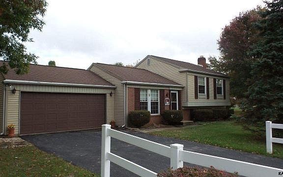 Great single owner very attractive 3 level split w/white vinyl main free fencing on .38 ac serene yard w/pro landscaping, butterfly bushes, tiered rock garden, cute shed w/windows and brick like pavers. New insul windows.Welcoming LR & Kit w/brk bar area leads to covered rear patio! New Frigidaire appls. Den on 4th BR! Large brick wood frplc. 2 car w/storage.