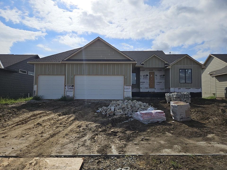 This Stonegate floorplan by Buckert Contracting will be finished Nov/Dec 2025. 5 beds, 3 baths, 2978 sqft. Oversized quartz kitchen island. Walk-in pantry. Double ovens. Gas fireplace in the living room with floating shelves and built-in cabinets. Covered deck with concrete patio below. Walk-out pit from basement. The master bath has a double vanity. Tiled shower with bench. The laundry room is accessible from the back hall as well as the master bathroom/closet for ease of putting laundry away. Finished basement has family room plus 2 bedrooms, 1 bathroom & a wet bar. 3-car garage. Well, irrigation and sod included in price. Andover school district! 3 community swimming pools with a park complete with basketball and pickleball courts.