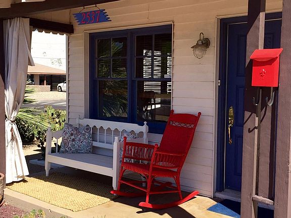 Simply adorable bungalow has been lovingly maintained and updated over the last 12 years! Wood floors & neutral tile throughout ample living spaces w/ quaint crown molding~ Natural maple kitchen cabinetry complements the sleek black granite slab counters~ Bathroom is remodeled w/ large tub/shower combo! Bedrooms are light & bright featuring stained concrete floors~ Windows, roof and AC are all in great shape! Very private, spacious over sized corner lot w/plenty of room to add a pool. Large screened in porch adds to enjoyable space! Solar/battery powered gate opens to driveway & large 1 car garage~ Popular midtown area provides all the urban style living you desire w/home being nestled in a classic historical neighborhood with lots of character!