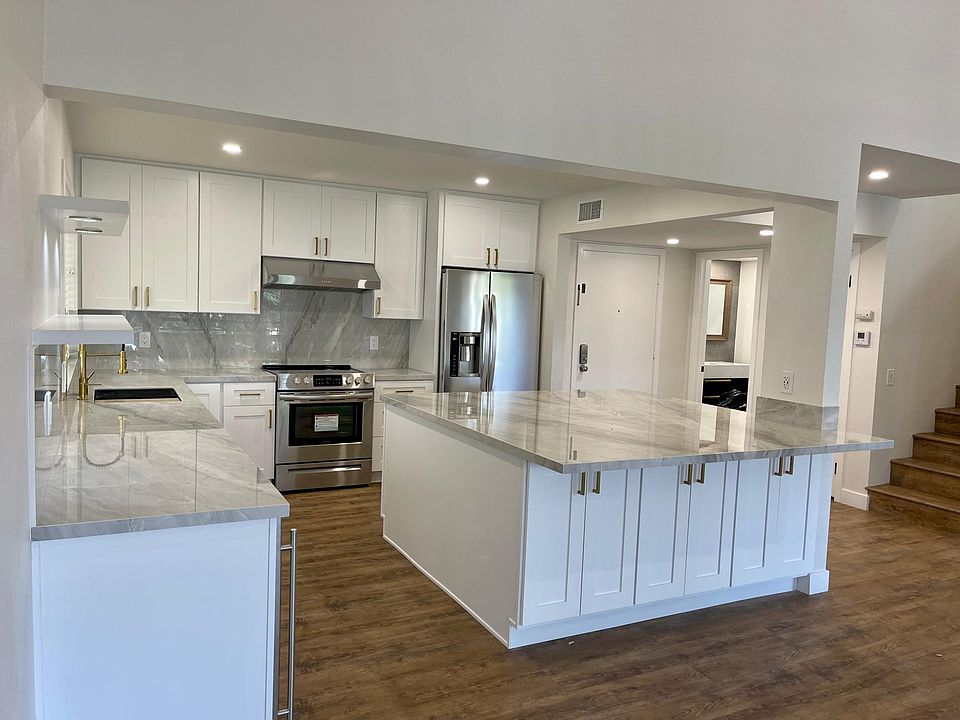 FULLY RENOVATED, two story condo in the La Costa Neighborhood of Carlsbad. This condo is a three bed + one optional room, two and a half bath, 2,050 SF home. The property boast soaring cathedral ceilings, chefs kitchen and open floor plan. The kitchen has plenty of storage with white shaker style cabinets, stainless steel appliances & gorgeous granite countertops. The spacious downstairs Master Bedroom has access to the large balcony, a full wall of closets, laundry & en-suite master bath. Upstairs there is two large bedrooms with a remodeled jack and jill bathroom + an optional office, den or bedroom. This home has been fully upgraded with new hardwood flooring throughout, paint, HVAC, skylights, LED recessed lighting throughout. Unit included 2 parking spots, 1 in a semi private enclosed space, 1 spot outdoors in parking lot. Community include pool, spa and sauna. 12 month lease required + back ground check.