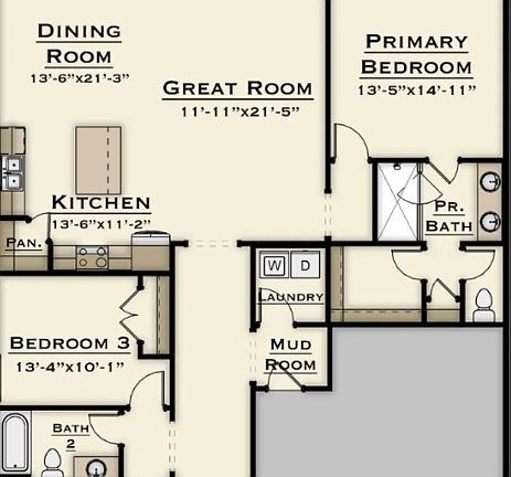 The Avery floor plan by Harris Doyle Homes is a spacious single-level home, the kitchen, dining room, and great room are all connected with an open floor plan! The covered patio is conveniently located off the great room, making it easy to take your gatherings outside. The laundry room and mud room are conveniently located off the garage. There is a designated flex room that can be used as an office, guest bedroom, playroom, etc!