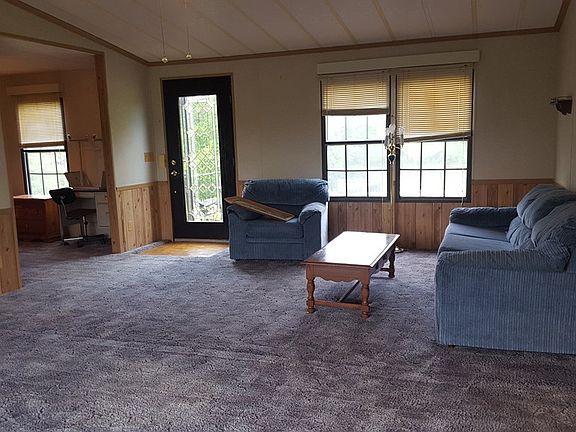 Very nice double wide located in the middle of farm country with no homes close by. Very private. Nice level yard. 2 outside buildings. Large front and back deck. 3 bedrooms and 3 full baths handicap accessible. Large living room, kitchen and dining room area. Nice laundry room with washer and dryer. Large interior storage room. Creek on property. Located on Wilkes Yadkin Road. 12 miles from North Wilkesboro. 12 miles from Yadkinville. Sold as is.