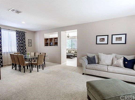 Stevenson Ranch pool home! Popular floor plan with formal living & dining, kitchen with center island, family room with media niche and fireplace. 3 bedrooms plus a loft wired for surround sound and laundry all upstairs. Large master suite has a slider that leads out to huge balcony overlooking backyard and pool. Master bath features dual sinks, separate tub and shower, & walk-in closet. Newer energy efficient dual zoned AC unit. Close to award winning schools, shopping & freeway.