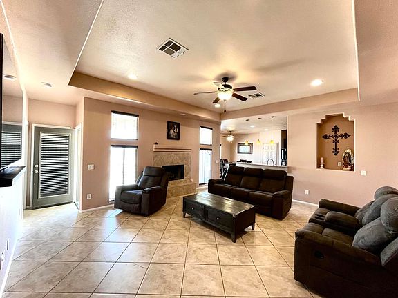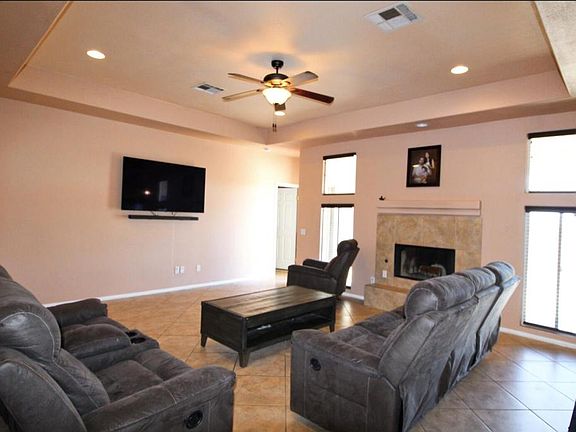 Beautiful Home with an open floor plan and high ceiling gives this house a spacious feeling. The Kitchen has granite counters, a breakfast counter with bar stools, a large pantry, Stainless steel sink, a stove, and a newer dishwasher. The dining room has a side door to the back patio, which is great for backyard access. The living room has a fireplace for chilly nights to make even cold nights warmer. This home has a split floor plan for privacy. The master bedroom has his and Hers closet, double sink, shower, and a separate tub. The main bedroom has french doors to the backyard. The second bathroom has double sinks and a tub. The third bedroom also has french doors, leading to a courtyard in front.This large lot of 12,263 SF has access to park an RV or off-roading toys plus enough room to built a pool and create a fun backyard for the family. Additionally, this home has a newer water heater, garage opener, security cameras, and exterior paint that was updated a little over a year.