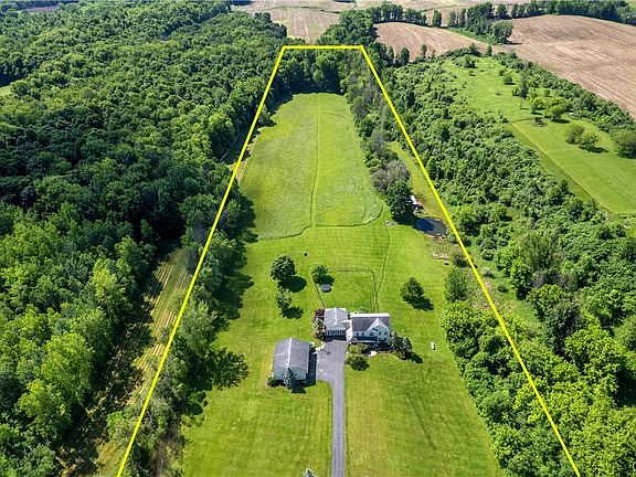 A picture perfect colonial, set back in a country setting with nearly 14 acres in Cato, NY!! Close to Baldwinsville, Syracuse and Auburn. This home has all you will ever need. Head inside to the open floor concept where you will find a sitting area, family room, dining room and living room ready for your entertainment needs. Kitchen is prepped with new counter tops, flooring and stainless appliances. New floors throughout! Also, on the first floor is an in-law suite/apartment equipped with a full bathroom, kitchen, living space and bedroom. Even use this for a guest or your business! Additionally, offered on the first floor is a dog kennel area that leads into a fenced in back yard. Heading upstairs you will find 2 newly carpeted bedrooms, a full bathroom, and a master with an ensuite bathroom. Central air and a full walk out basement included! Outside is really where the country beauty shines... a detached 2 car over sized bay garage (32x40) is met by your paved driveway. Out back is a pond along side a (20x50) pole barn equipped with water and electric. The gardens have been professionally landscaped every year! This is awaiting your rocking chairs on its front porch!!