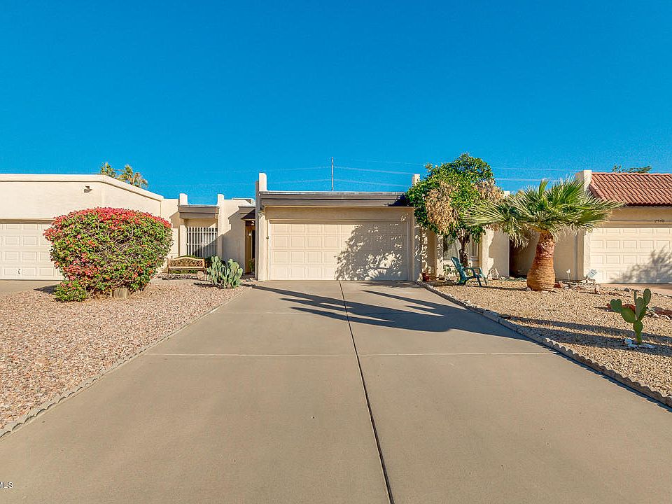 Home sweet home! This perfect GEM is in a highly desirable northeast Phoenix neighborhood, Pepper Ridge Townhomes. A spacious 2 Bedroom, 1 Bath, Open Floor Plan offering easy low maintenance living. Desirable color palette throughout with newly painted interior and wood laminate flooring. 2-Car Garage. Ideal N/S lot with an extended covered patio and private backyard area. **Two Community Pools - Close to Shopping, Restaurants and Great Freeway Access to Loop 101 & 51**