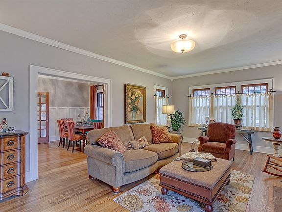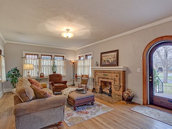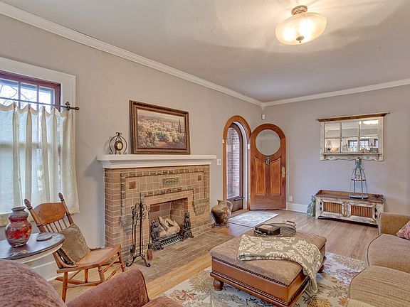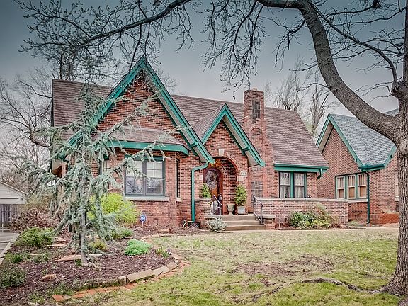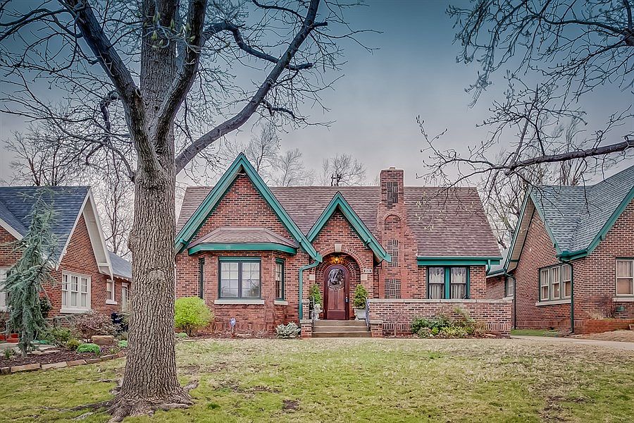 One of the most charming English Tudor houses, and on the Blvd in Crestwood! From the rounded front door w/portal window, to the California Art tile fireplace in the living room, this home exudes Historic style! Don't worry, though, as the kitchen has been updated, respectfully keeping with the style/age of the home. White quartz on island, leathered granite countertops, SS appliances, pantry, exposed brick & tin ceiling accent. Two bedrooms down, one w/half bath. Main bath has octagon tile floor, beautiful pedestal sink, linen closet, separate shower, & B&W tile accents. Upstairs offers a sitting/children's play area, laundry, bathroom, and computer room or office nook.The bedrooms up have built-ins, including a desk/vanity in each. Brick 2 car garage, iron gate, and iron gazebo in back yard stays. Don't let this one get away!