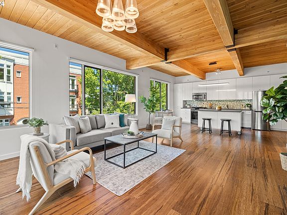 Modern, bright, and upscale condo with the coveted NW Alphabet District designed by the award-winning Holst Architecture. Inviting interior with ample windows and bathed in gorgeous natural light. Enjoy high-end luxury finishes throughout including quartz counters, heated bamboo hardwood floors, Carrara marble backsplash, soaking tub, and high timbered ceilings. Open floorplan for flexible use of space with an extra bonus room for storage, office, den, etc. In-unit washer/dryer hook-up and central AC. Step outside to your private balcony for lots of fresh summer air, perfect for a morning cup of coffee or evening libation. Secured deeded garage parking and large separate storage unit conveniently located next to parking space. The perfect blend of privacy while being right in the heart of all the best the city has to offer. One of Portland's most sought after neighborhoods with restaurants, bars, and cafes right outside your door, plus a vibrant condo community to welcome you into the building. Stroll down NW 23rd Ave for some of the best shopping in PDX. Wander endless miles of trails in Forest Park just a few blocks away. Don't miss this Northwest Portland oasis!