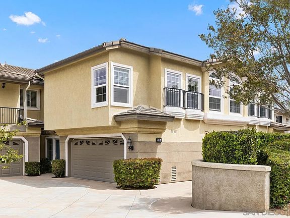 Situated along the 16th Fairway of the Omni La Costa Golf Course, this two-story condo offers breathtaking golf course and hillside vistas. Great floorplan with FIRST FLOOR PRIMARY! Step inside to high ceilings, ample natural light, new carpets, and a freshly painted interior! As you enter, you are greeted by a spacious entryway leading to a generous great room with oak wood flooring, ideal for entertaining. The kitchen is equipped with ample storage space, freshly painted cabinets, a walk-in pantry, granite counters with a bar, and recessed lighting. The downstairs primary bedroom includes sliding doors to the patio, a luxurious spa-like bath with a soaking tub and separate shower, and a walk-in closet. A separate laundry room downstairs with built-in cabinets and sink adds convenience. Upstairs, two large bedrooms with new carpets and an oversized bathroom provide plenty of space and comfort. Attached 2-car garage and upgraded HVAC system with AC. The low-maintenance outdoor space is perfect for unwinding while enjoying the picturesque golf course views and witnessing beautiful sunsets. This prime location is just a short drive to the beach and offers easy access to excellent dining, shopping, and entertainment options. Top rated school district!