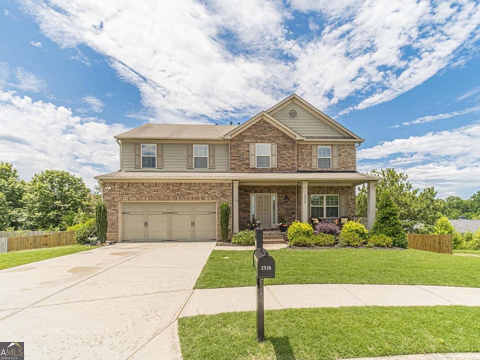 Welcome home to this beautiful craftsman 4 bedroom/ 2.5 bathroom home in sought after Braselton. Located in The Falls of Braselton- a friendly Swim/Tennis community with Street Lights and Sidewalks, Clubhouse, Fitness Center, Playground, and soon to welcome a Pickleball court! Enjoy this fantastic location convenient to Chateau Elan and I-85, with many Shopping and Dining experiences, Hospitals and Medical Centers, Mulberry River Walk and so much more all connected by the Golf Cart Path. At home here you will be welcomed with beautiful established landscaping in a cul-de-sac lot with a privacy fenced backyard. Enjoy a little nature or friendly faces from the covered front porch to the open and spacious back deck. With excitement to experience more, let yourself be ushered in to a warm foyer entry with beautiful Waterproof Luxury Vinyl Plank Floors and a neutral paint pallet carried throughout the main. You may notice the crown molding, wainscoting and smooth ceilings with clean sleek fixtures. Meals and entertaining are made easy with this open family room and kitchen floorpan. Gas range, granite countertops, black stained cabinets, center island, pantry and stainless steel appliances are found among the bayed breakfast nook and fireside family room with gas starter wood burning fireplace. Powder room for guests enjoyment is also located on the main level. Upstairs you will enjoy the comfort of 3 guest bedrooms each with ceiling fans and the oversized owners suite featuring a double door entry, vaulted ceiling with ceiling fan, large walk in closet and spacious sitting room. The luxurious ensuite bathroom boasts of double vanities, tile shower and separate soaking tub. The 3rd floor offers an unfinished terrace stubbed for a 3rd bathroom with walk out to the private, fenced back yard. This is the perfect space to let your imagination run wild and finish to your hearts desire or leave as is for ample storage opportunities. The level backyard features a garden area and plenty of lush yard space to run, roam or play. Whatever it is you are looking for, you are sure to find it here!