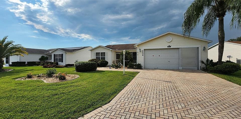 *** Back On Market *** Buyer fell through. SELLER IS EVEN MORE MOTIVATED – BRING YOUR OFFER TODAY! Step into the lifestyle you’ve been dreaming of with this beautifully appointed Florida home in The Villages. From the moment you arrive, the brick driveway, walkway, and charming screened front porch create an inviting first impression. Inside, the leaded-glass entry door opens to a bright, open layout with vaulted ceilings, warm laminate flooring, and abundant natural light. The split-bedroom floor plan ensures comfort and privacy, with three spacious bedrooms. The primary suite offers crown molding, dual walk-in closets, and a spa-inspired bath with granite countertops, dual vanities, a walk-in shower, and private water closet. Multiple living spaces allow you to enjoy Florida your way—whether it’s the heated and cooled Florida room, the enclosed lanai, or the screened patio perfect for entertaining. With an oversized garage that accommodates two cars plus a workshop, and a floored attic for easy storage, practicality meets style. All of this is just minutes from pools, golf courses, shopping, and the vibrant Savannah Center and town squares. And all a leisurely golf cart ride away. This home combines comfort, elegance, and convenience—don’t miss the chance to make it yours. ROOF 2017 | AC 2019