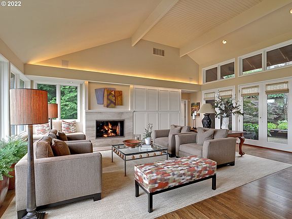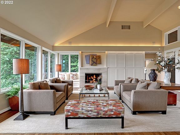 Spectacular views & serenity awaits in this meticulous remodel of architect Saul Zaik's NW Contemporary. Secluded in Portland Heights just minutes from the city this fabulous great room plan boasts a primary suite & a spa-like bath on main, high ceilings & walls of windows to let the outdoors in. Endless outdoor living with wrap around decks enjoy views of 3 mountains, 2 rivers, & city lights. Exercise room, wine cellar, and a rare 2 car garage make this home a true gem in the city. [Home Energy Score = 6. HES Report at https://rpt.greenbuildingregistry.com/hes/OR10203726]