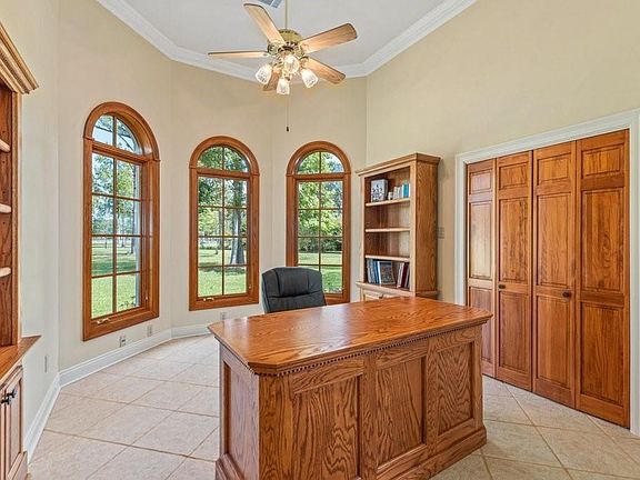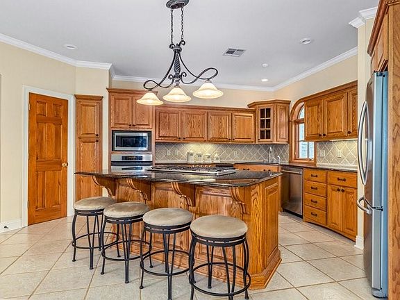 Timeless beauty, quality craftsmanship, pristine condition and space galore are just a touch of what this gem has to offer. The large, open spaces, high ceilings and expansive layout make this home an entertainer's dream, not to mention the kitchen's Thermador gas range and slide-out shelving. The high-end, custom windows allow an abundance of natural lighting throughout as well as picturesque views of the land. The stained cabinetry throughout with custom features and intricately detailed fireplace surround and mantle are just a glimpse of the upgrades this property features. The hidden stairwell leads the way to a theatre with leather seating which will remain with the sale as well as an extra-large gameroom that's home to a wet bar with bar stools and a pool table.