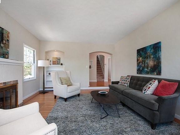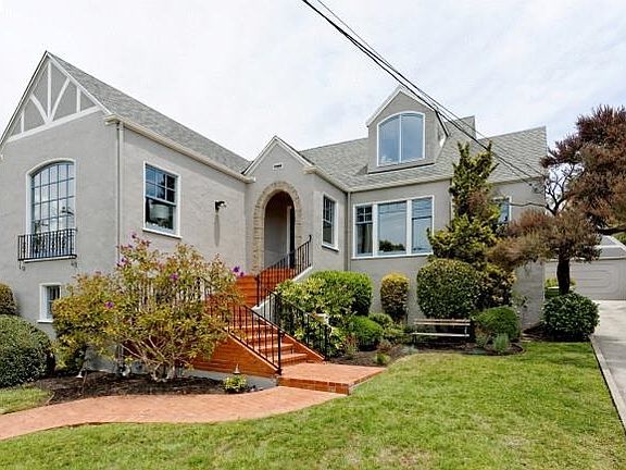 This Tudor style home has a great floor plan and lots of original 1931 architectural details such as decorative half-timbering, gables, arched doorways, built-ins, and hardwood floors. From its stately front lawn with a curved brick walkway leading to a lovely arched front entrance to its recently professionally landscaped back yard and patio area, you will love everything in between. Newly painted inside and out with designer chosen colors this home sparkles. Home features include a large sunken living room with a grand picture window, fireplace, and built-in book shelves; a study or office; a formal dining room, and a kitchen with a breakfast room with built-in shelves and cabinets. The main level includes 2 roomy bedrooms, one spacious updated bath with a separate tub and shower stall, as well as a laundry room with pantry storage off the kitchen. The upper level consists of a large master bedroom with great bay, Golden Gate Bridge, and Mt. Tamalpais views from a charming window seat, a bathroom with sliding barn style door, and a 4th bedroom which could easily be used as a nursery or master suite sitting area. A basement including a bath gives you plenty of room for storage, projects, or future development. The back yard includes a patio area with built-in fire pit, grass and planting areas. There is a long driveway and large 2 car garage. The home is close to Tassajara and Canyon Trail parks and for those who like hiking you are not far from Alvarado/Wildcat Canyon and El Cerrito Natural area parks. A short distance to Del Norte BART, shopping, restaurants, and freeways makes this an ideal place to call home. For more information go to www.2538Tulare.com.