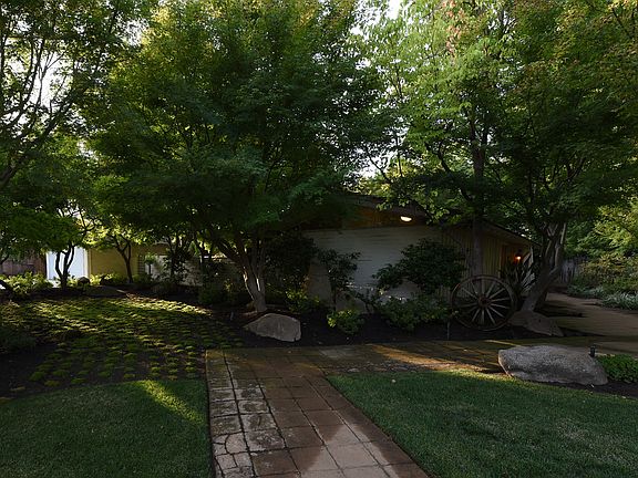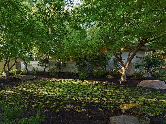 Absolutely gorgeous Cliff May garden retreat. This home is truly is one of the finest examples of California modernism and indoor/outdoor living you will find in Fresno with walls of glass (dual pane) throughout viewing lush gardens and courtyards. Enter to the stunning living room with fireplace, secluded master with fabulous bath, and formal dining with courtyard access. The striking kitchen with granite counters, tons of counter space & pantry views the rear gardens & leads to the family room & West wing with additional two bedrooms and bath. The rear gardens, patio, covered wood deck & pool area are private, serene and absolutely spectacular. A true Mid Century Modern treasure!