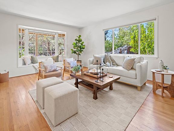 Located on a sunny hillside at mid-valley is this light-filled, single level classic ranch-style home. Perfectly blending comfort and style, this move-in ready property features a welcoming front porch, inviting living room with Carmel stone fireplace, wood floors and recessed lighting throughout which enhance the aesthetic of the home. The chef's kitchen features granite countertops, farmhouse sink and convenient breakfast bar ideal for meal prep and casual dining. The adjoining dining room sets the stage for elegant meals, while the family room provides the perfect place to unwind. The 4th bedroom could easily serve as an office, workout room or storage area, and adds versatility to this already impressive home. Step outside to your fully fenced and gated back yard featuring a citrus grove of mature fruit-bearing trees, flowering camellias and rose bushes, raised garden beds, chicken coop and multiple patios that create the perfect setting for exercising your green thumb, enjoying outdoor living, entertaining and relaxing. This home also offers an oversized 2-car attached garage that provides ample space for parking and storage. Don't miss this rare opportunity to own a beautiful, well-maintained home on a quiet cul-de-sac with an exceptional lifestyle in a tranquil setting.